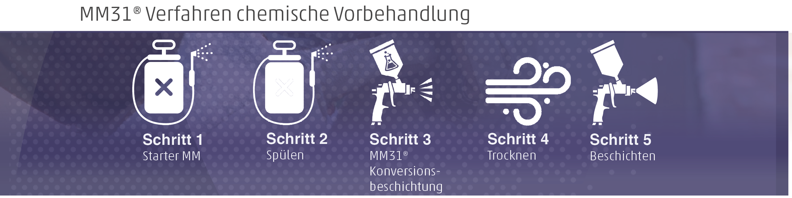 Starter MM ist die optimale Lösung zur Metallreinigung. Entfernt effektiv Oxide, Schweißhaut und leichten Walzzunder. Anwendbar bei milden Temperaturen (20–35 °C); pH-neutral. Damit ist dies eine umweltfreundliche Lösung, die zur Erreichung der Ziele des europäischen Green Deals beiträgt. Starter MM wurde optimiert, um die Auswirkungen auf das Spülwasser so weit wie möglich zu begrenzen. Eine clevere Prozessoptimierung, die zu Wassereinsparungen führt. Das Produkt eignet sich für verschiedene Metallarten wie Aluminium, verzinkten Stahl und Stahl. Es sorgt für einen perfekt gereinigten Untergrund, auf den im nächsten Schritt MM31® aufgetragen werden kann.