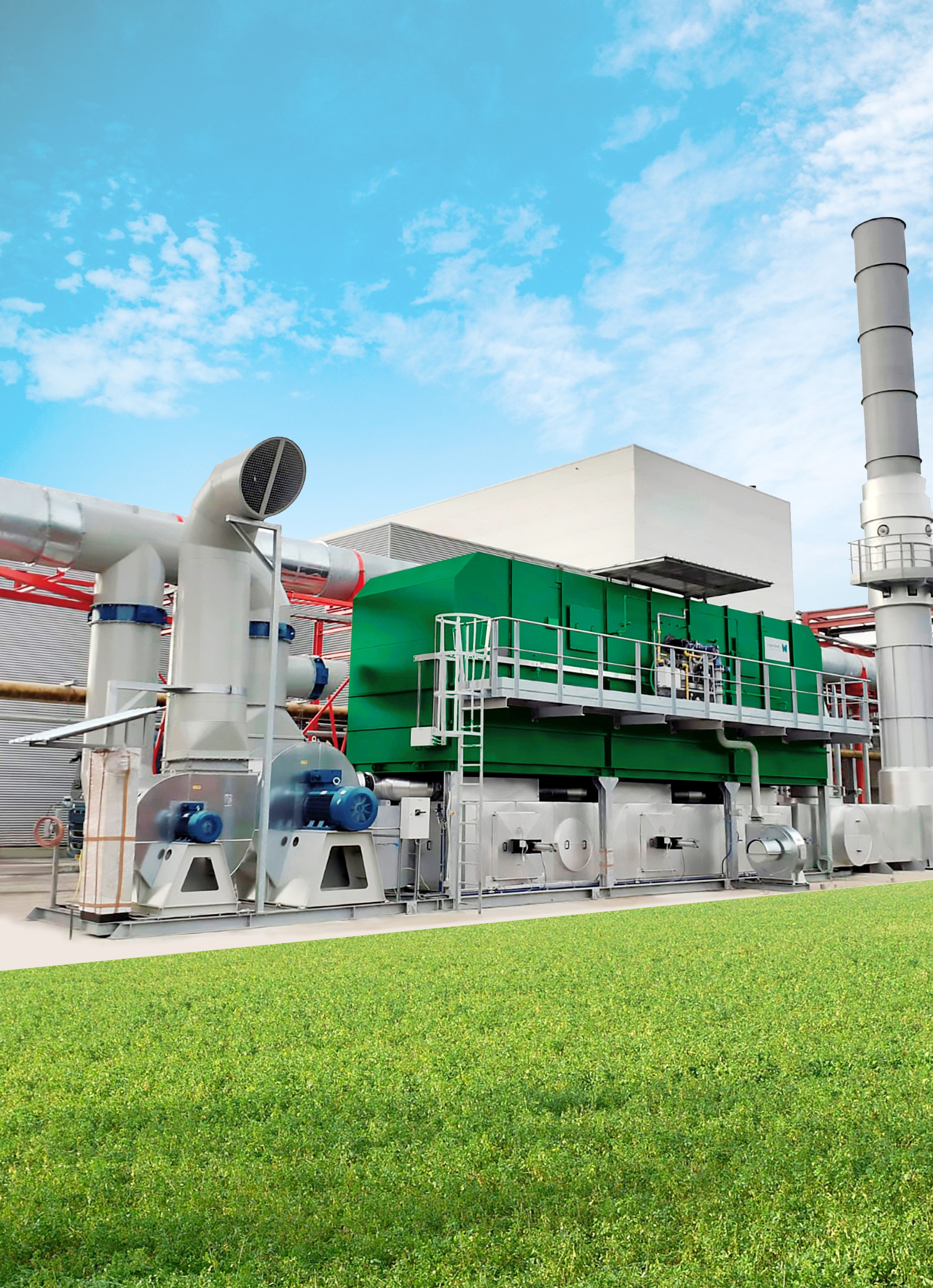 Regenerativ thermische Oxidationsanlagen RTO wurden speziell entwickelt, um die Schadstoffe aus dem Prozessgas durch thermische Oxidation bei hohen Temperaturen zu zerstören. RTOs nutzen die Fähigkeit einer Masse inerten Materials, sich zyklisch anzusammeln und die durch den Verbrennungsprozess erzeugte Wärme zurückzugeben. Der Wirkungsgrad der Wärmerückgewinnung kann bis zu 96% betragen.