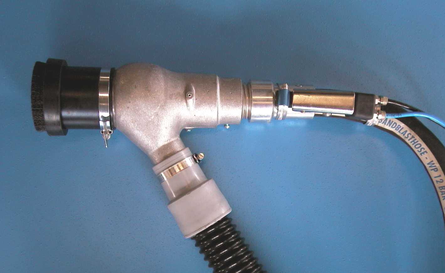 - Schnell austauschbare Strahlkopfaufsätze zum Strahlen verschiedener Oberflächenformen