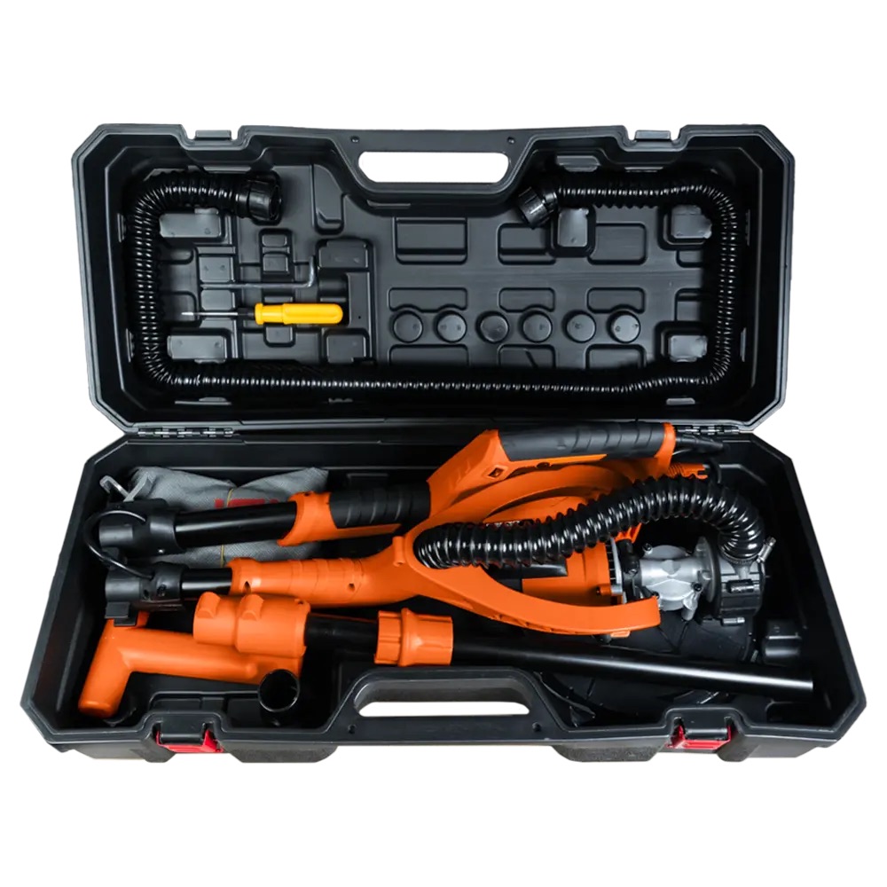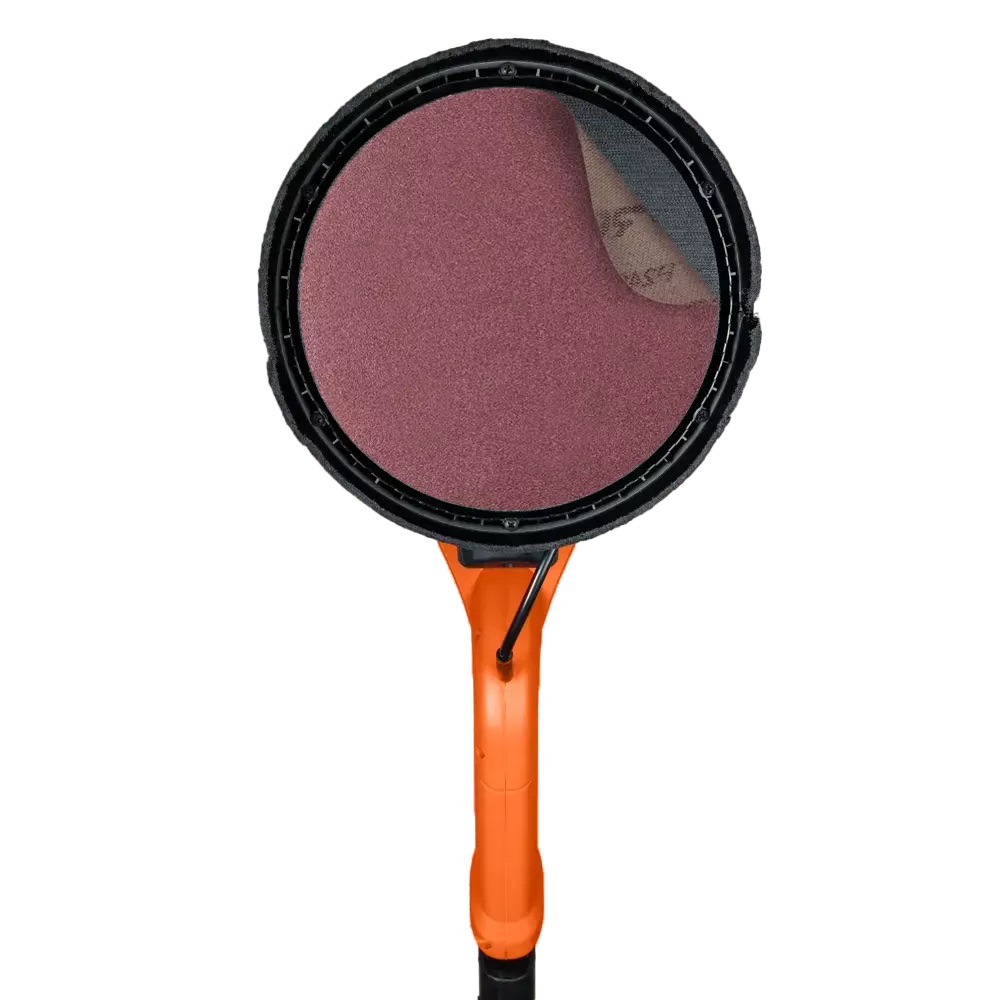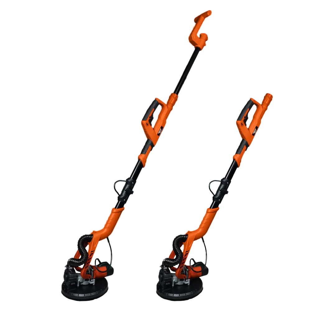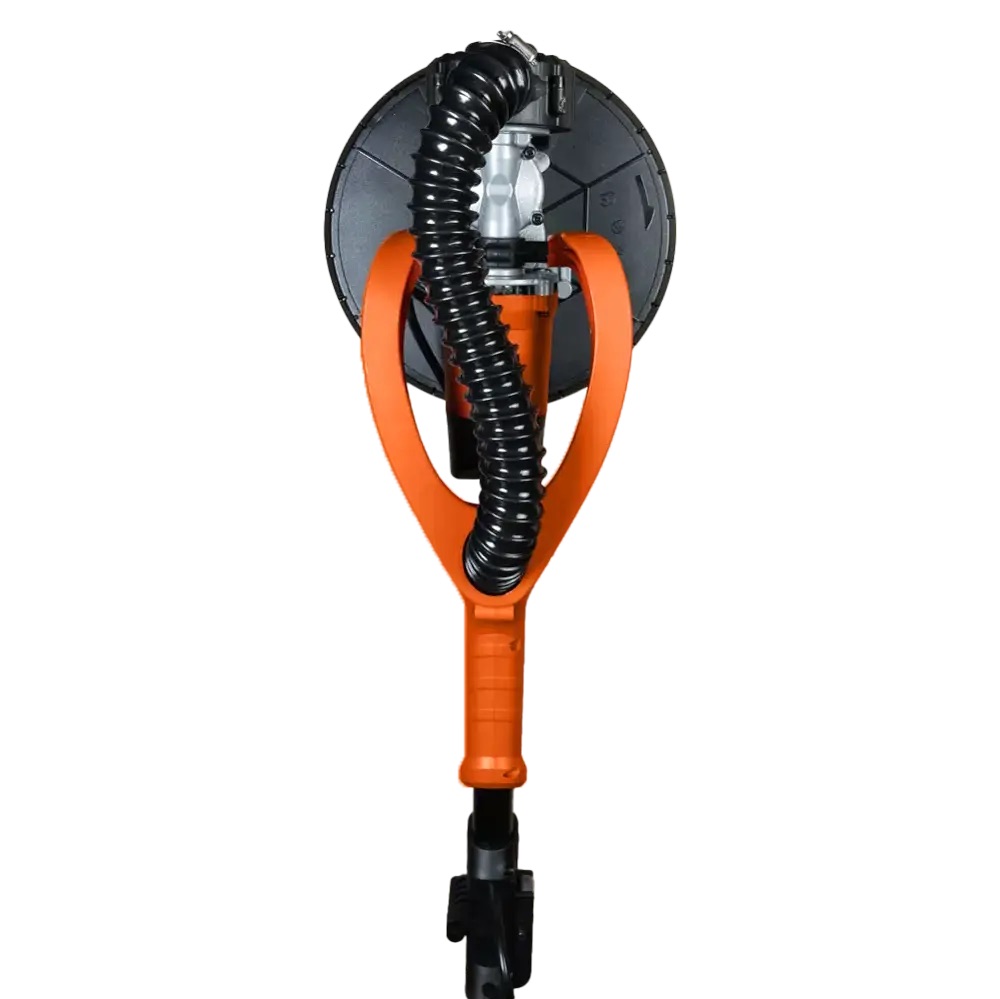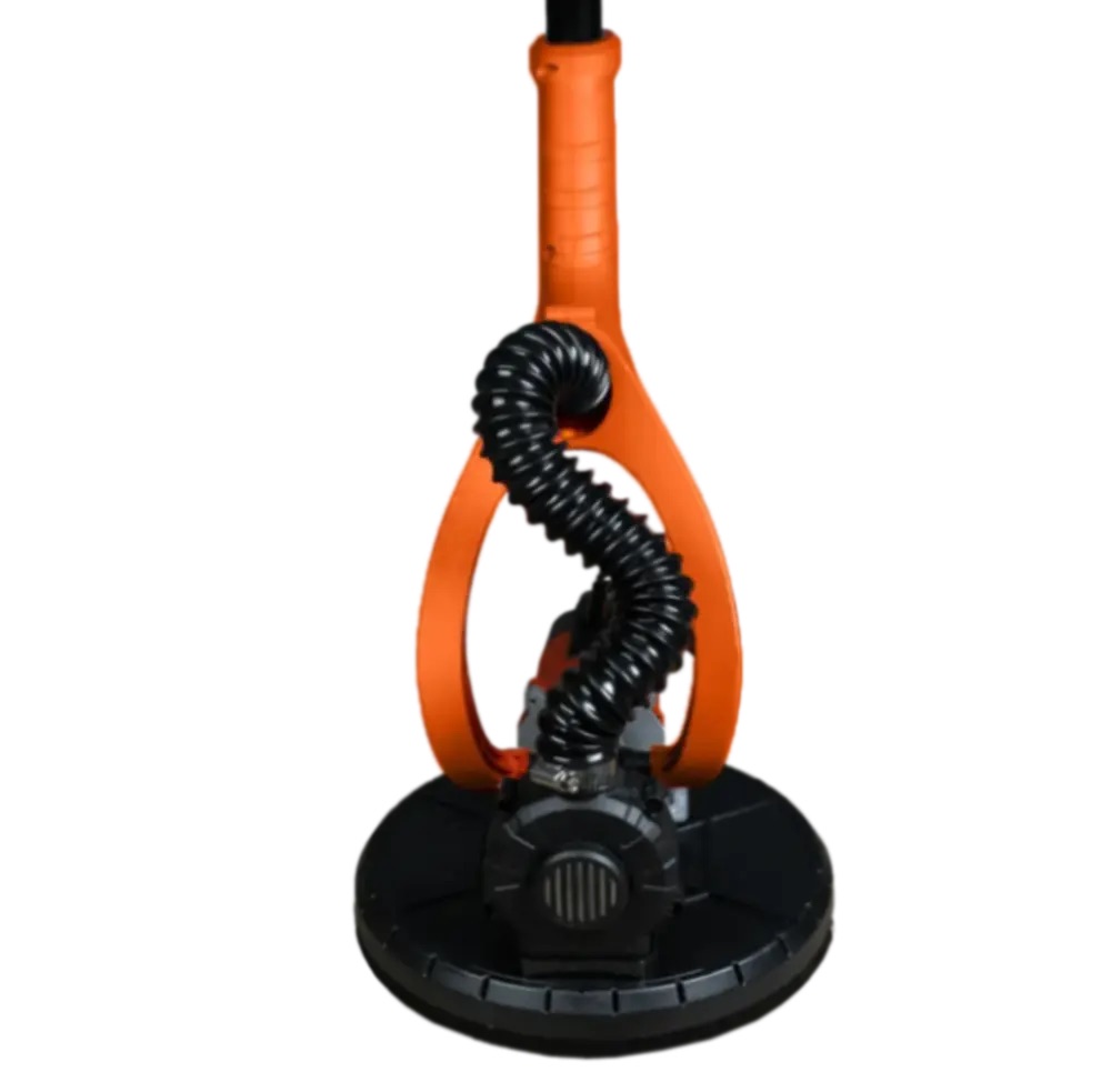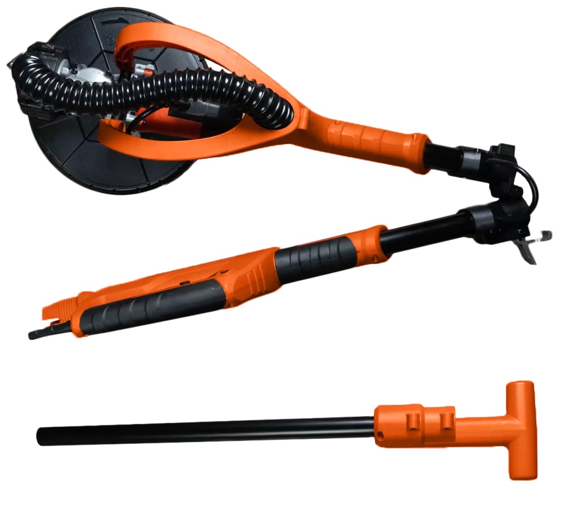 Schleifgiraffe ASPRO-C8 mit 114 cm Teleskopgriff und Vakuumregelung. Motor stufenlos einstellbar von 600 bis 1500 U/min, Scheibendurchmesser 225 mm, Gewicht 5,3 kg. Anschluss an einen Staubsauger möglich, reduziert Staubentwicklung und erhöht die Lebensdauer.