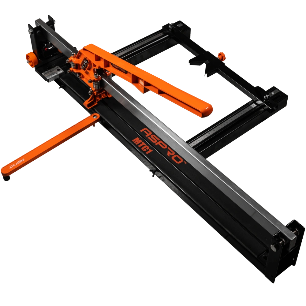 ASPRO Fliesenschneider Profi mit einer Schnittlänge von 1200 mm für gerade und diagonale Schnitte an großformatigen Fliesen bis zu 15 mm Stärke. Ausgestattet mit 20 Kugellagern, einem Laserpointer und einer Seitenanschlagschiene.