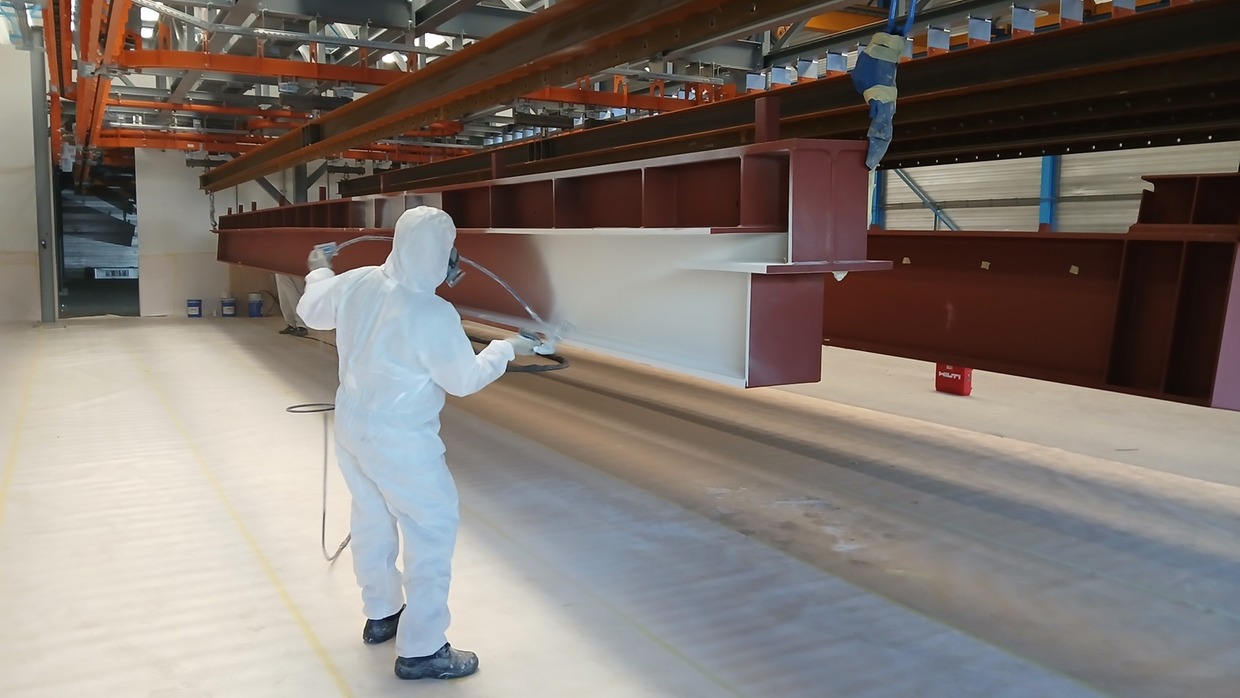 Bis vor kurzem wurde die Beschichtung von Konstruktionsteile mit feuerhemmende Lacken noch hauptsächlich „on-site“ auf der Baustelle durchgeführt. Ein kostspielige und zeitaufwendige Methode die den Einsatz von Grossgerüsten, Planen und Heizung des gesamten Gebäudeaufbaus erforderte. Für einer unser Kunden haben wir eine Anlage geplant womit diese Spezialbeschichtung „off-site“ auf die Grossteile appliziert werden kann. Applikation, Trocknung, Schichtkontrolle und Handling auf 500 m2 für Bauteile bis 18 mtr Länge und 5 Tonnen Gewicht. Die Anlagentechnik nutzt Wärmerückgewinnung und intelligente Steuerung für Air-Handling. Die Mitarbeiter können die Bauteile in konditionierte Umgebung Beschichten und Trocknen lassen, für Beschichtung und Schichtstärkemessung sind die Flächen gut und einfach erreichbar. Das Ergebnis: Qualitätssteigerung, kürzere Durchlaufzeit, niedriger Kosten und weniger Energieverbrauch.