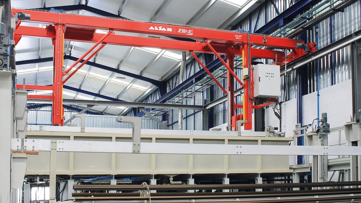 ANODIKIT® ZONE ist eine kompakte Eloxalanlage, die für Aluminiumverarbeiter entwickelt wurde, die eine hochwertige Anodisation bei reduziertem Platzbedarf sowie geringeren Ressourcen- und Betriebserfordernissen anstreben. Die Anlage basiert auf einem sprühapplizierten Vorbehandlungskonzept, bei dem sämtliche Vorbehandlungsstufen in einem einzigen Multiprozessbecken durchgeführt werden. Diese Konfiguration reduziert die Anzahl der Becken und das Badvolumen im Vergleich zu konventionellen Eloxalanlagen erheblich, bei gleichzeitig gleichmäßiger und kontrollierter Oberflächenvorbereitung.