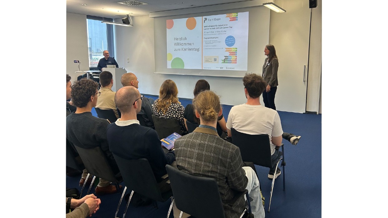 Am letzten Messetag setzte die PaintExpo mit dem Career Day auch einen Schwerpunkt auf die Förderung junger Talente. Studierende und Absolventen aus den Fachbereichen Elektrotechnik, Verfahrenstechnik, Maschinenbau und Softwareentwicklung erhielten in einer Keynote von Branchenexperte Markus Vüllers erste Einblicke in die industrielle Lackiertechnik.