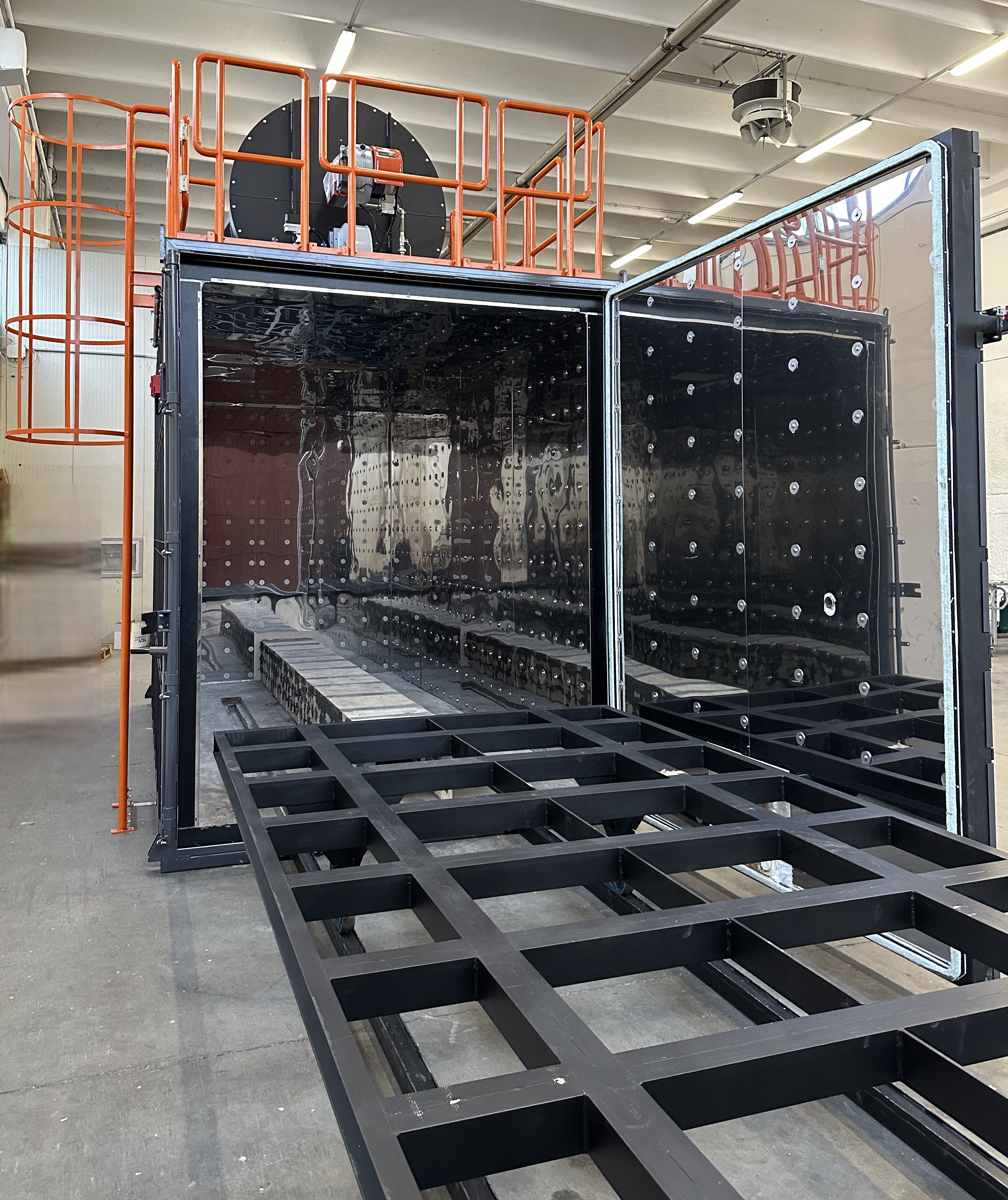 TECFLAM has been producing paint-stripping kilns for more than 25 years for the thermal cleaning of hooks, hangers, and all metal parts used in the powder coating process. Paint is removed through controlled pyrolytic combustion, while all resulting hazardous gases are safely burned in an afterburner chamber before being released into the environment. Our solutions ensure an efficient, safe, and environmentally friendly process, with controlled combustion systems and full compliance with emission regulations.