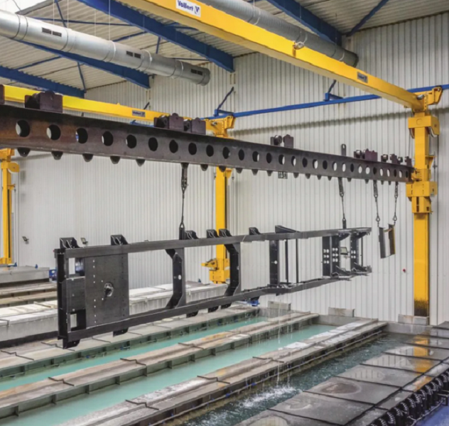 Electric dip coating is an electrochemical process for coating metals that can be used for all submersible workpieces and is reckoned to be of particularly high quality, resource-saving and environmentally friendly. The paint ensures a hard-wearing surface with a very high level of corrosion protection and is used particularly in vehicle construction as well as in agriculture and forestry.