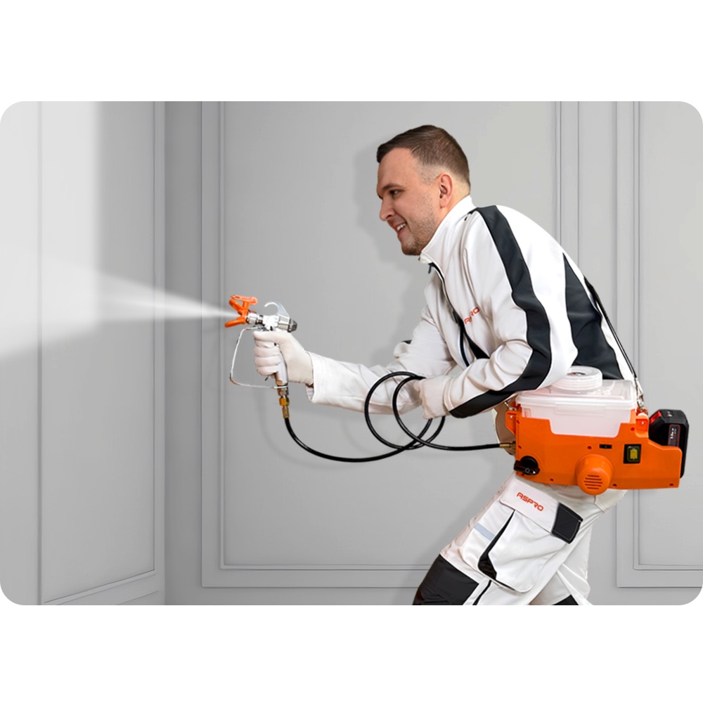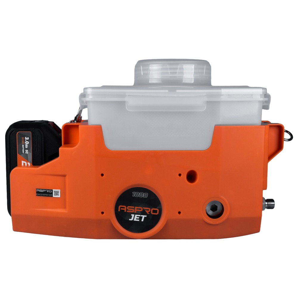 The compact, battery-powered ASPRO JET 1000 airless paint sprayer delivers 500 W of power with a flow rate of 1 l/min. With a maximum pressure of 150 bar and support for tips up to 0.017″, it offers an optimal combination of compact design and reliable performance.