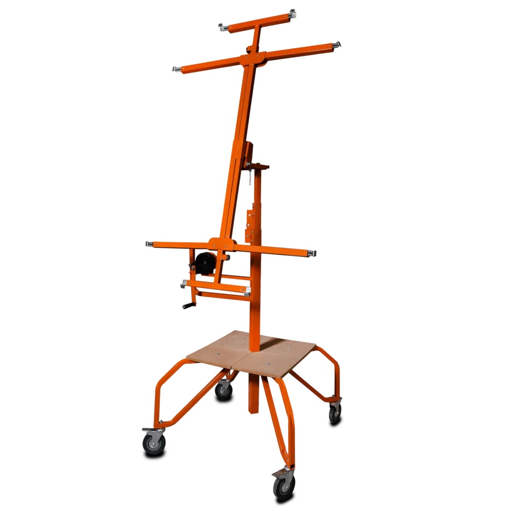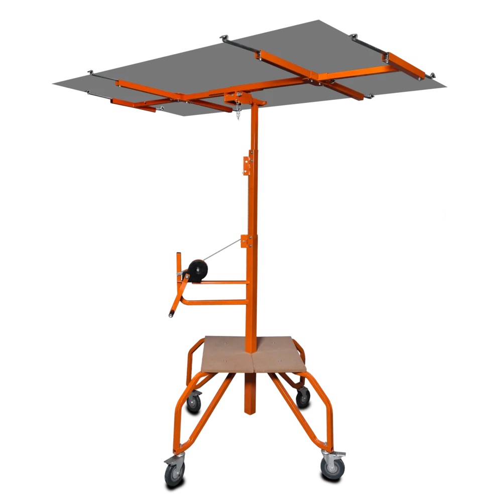 The ASPRO drywall lift is a reliable panel lifter for fast and safe installation of drywall sheets on ceilings and walls. With a load capacity of up to 68 kg and a working height of 3.35 m, it enables convenient one-person operation and ensures maximum efficiency on the job site.