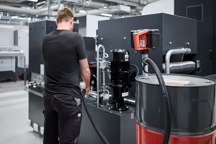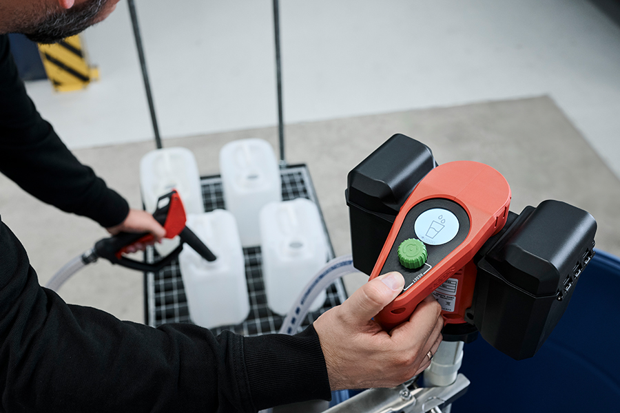 of battery operation. With 420 watts and 2 x 18 V/4.0 Ah batteries, it runs longer than any comparable cordless drive for drum pumps on the market. Ideal for applications where cables are a nuisance or no mains connection is available. Smart functions also ensure greater efficiency and convenience. A real technological edge. Worldwide.